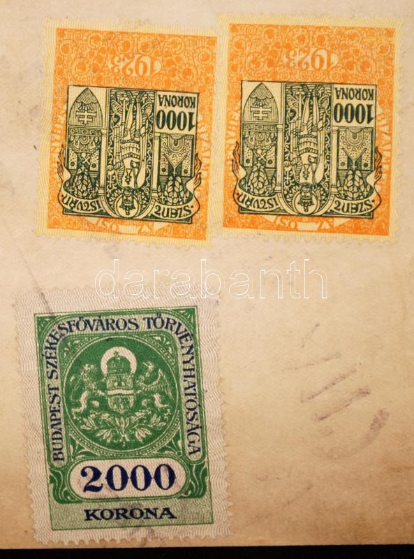 Leírás: 1920 Sütősegéd bizonyítvány, okmánybélyeggel (1kr., 2000, 1000), 47x60