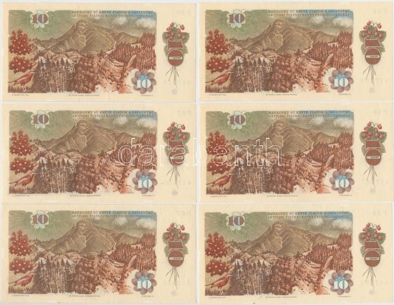 Czechoslovakia 1986. 10 Korun (6x) with 2pcs of sequential serials and 3pcs of close serials C:AU,XF