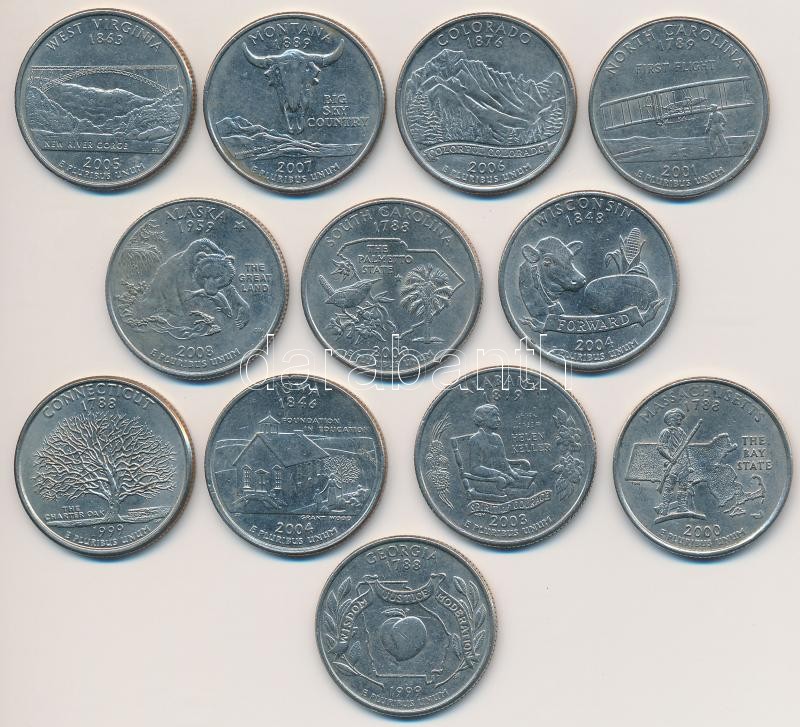 Leírás: Amerikai Egyesült Államok 1999-2008. 1/4$ Cu-Ni "50 Állam" (12xklf) T:2