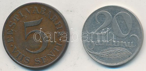 Leírás: Vegyes: Észtország 1931. 5s Br + Lettország 1922. 20s Ni T:2-