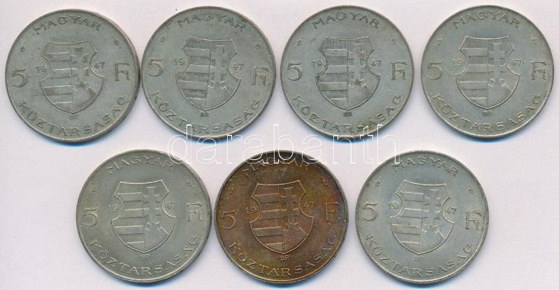 1947. 5Ft Ag "Kossuth" (7x) T:2,2- patina