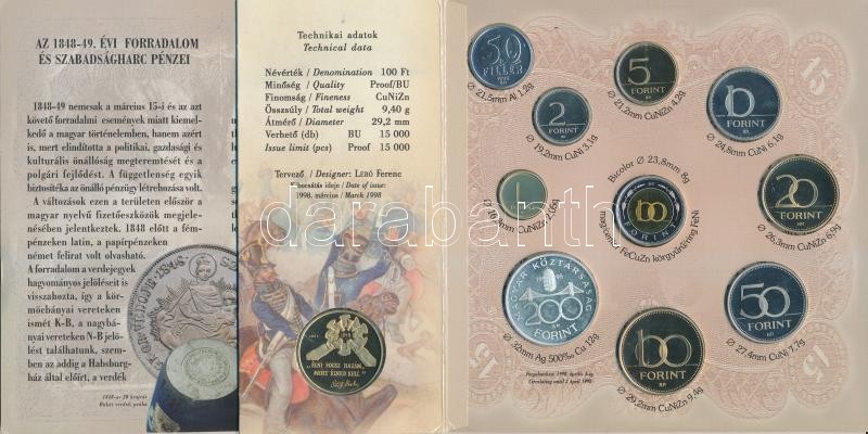 Leírás: 1998. 50f-200Ft 10klf db, benne 2klf 100Ft, 200Ft Ag "Deák" + 1db 100Ft "1848-49-es szabadságharc" szettben T:PP külső tok hiányzik
