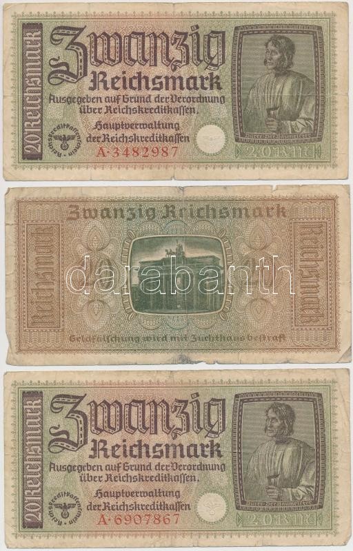 50pcs of banknotes in album, between them Hungary 1914. 2 Kronen, 1918. 10.000 Kronen, German Third Reich / German occupied territories 1940-1945. 20 Mark C:mixed