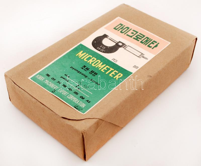 North Korean micro... https://www.darabanth.com/hu/248-Gyorsarveres/248.0/Festmeny-mutargy-papirregiseg-egyeb/Bolhapiac~200016/Eszak-koreai-mikrometer-fa-dobozban-Bontatlan--3Cbr3ENorth-Korean-micrometer-in-wooden-box-br~II837659