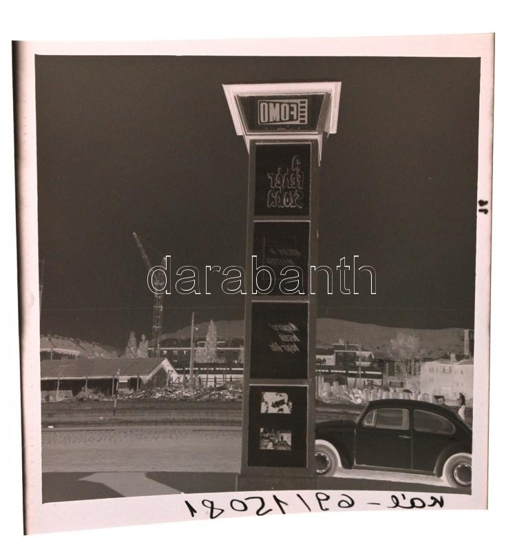 1969 FŐMO (Fővárosi Mozi Vállalat) film plakátjai, hirdetési oszlopai Budapesten, városi környezettel, szabadon felhasználható, jogdíjmentes eredeti negatívok tétele, 65 db professzionális fekete-fehér negatív, 6x6 cm