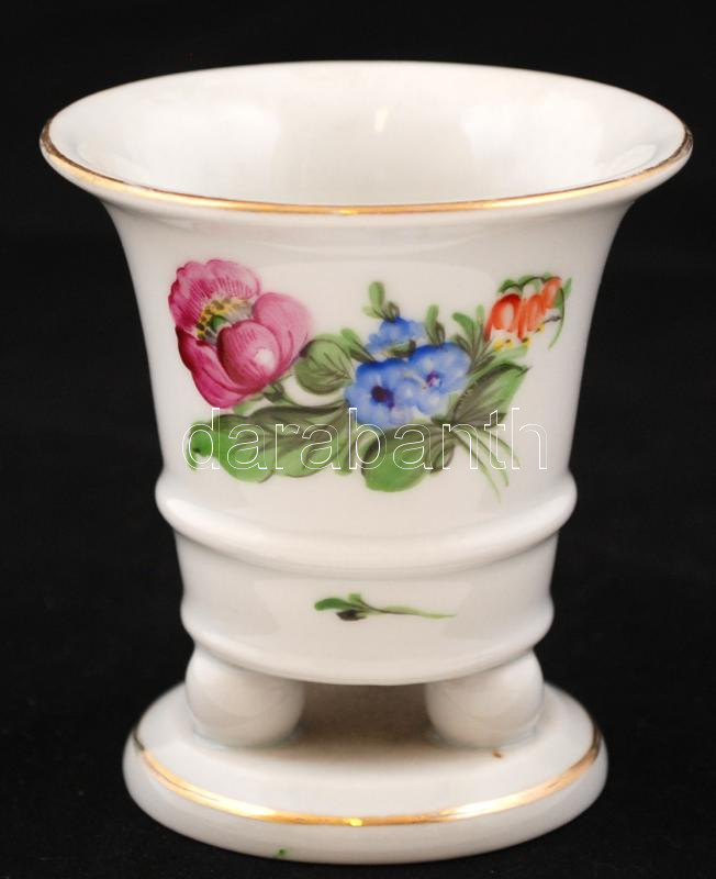 Leírás: Herendi porcelán mini váza, kézzel festett, jelzett, kis kopásnyomokkal, máz alatti hajszálrepedéssel, jelzett, m: 7,5 cm, d: 7 cm