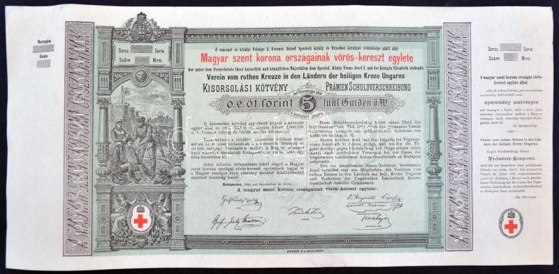 Budapest 1882. "Magyar szent korona országainak vörös-kereszt egylete"... https://www.darabanth.com/hu/248-Gyorsarveres/248.0/Numizmatika/Reszvenyek-es-sorsjegyek~400005/Budapest-1882-Magyar-szent-korona-orszagainak-voros-kereszt-egylete-kisorsolasi-kotveny-5Ft~II1188135