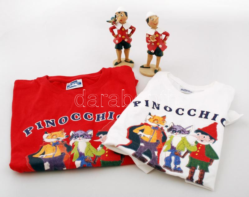Leírás: Nagy Pinocchio tétel: Pinocchio szobrok, műgyanta, cca 16cm, 2db pamut póló újszerű állapotban, (10-12 évesnek)