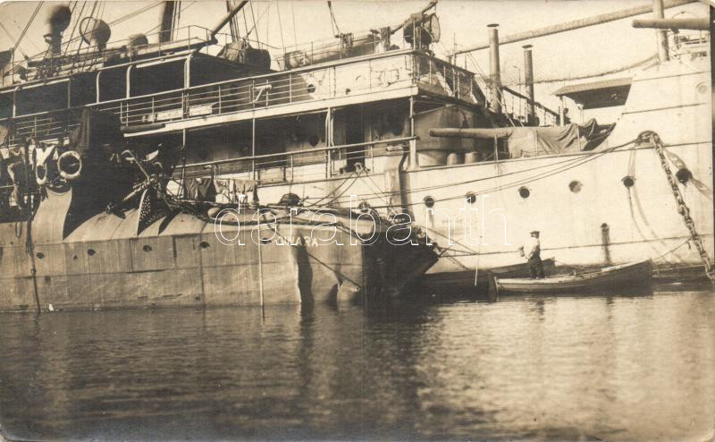 Leírás: A sérült Dinara rombolóhajó az U43-mal való ütközés után az SMS Gaa mellé kötve / K.u.K. Kriegsmarine, destroyer ship in damaged condition, photo