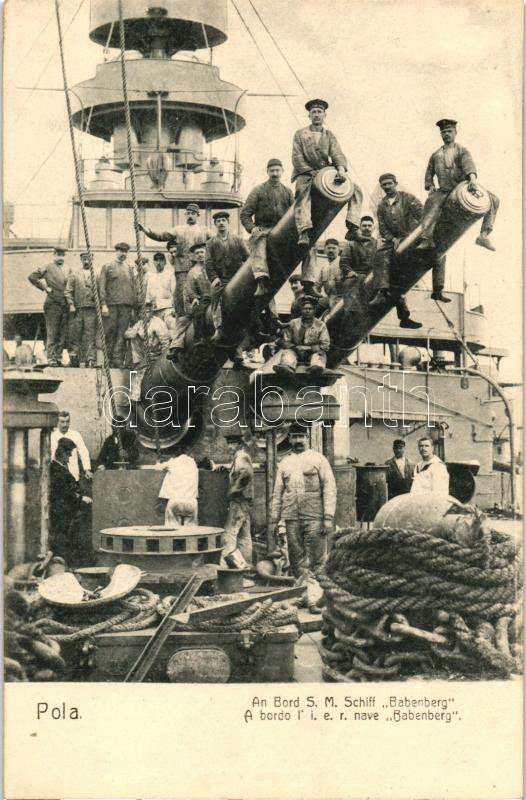 An Bord SM Schiff Babenberg / K.u.K. Kriegsmarine, Austrian navy https://www.darabanth.com/hu/25-Nagyaukcio/25.1/Motivum-kepeslapok/Hadihajo~9862/An-Bord-SM-Schiff-Babenberg-KuK-Kriegsmarine-Austrian-navy~II1380290