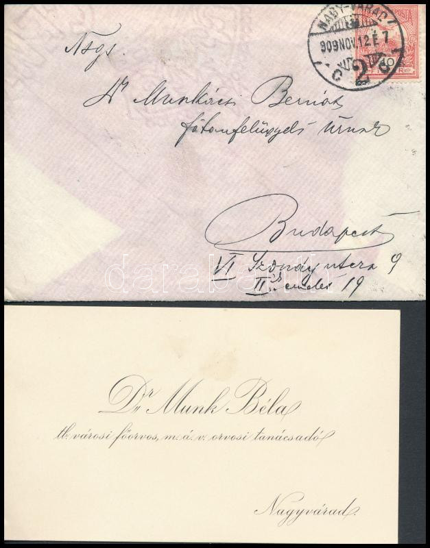 Leírás: 1915 Dr. Munk Béla levele Munkácsi Bernát néprajztudós részére, a címzett válaszlevelével és Munk Béla névjegykártyájával.