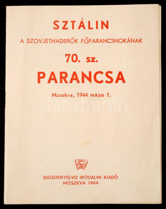 Leírás: 1944 Sztálin a szovjethaderők főparancsnokának 70. sz. parancsa 12p.