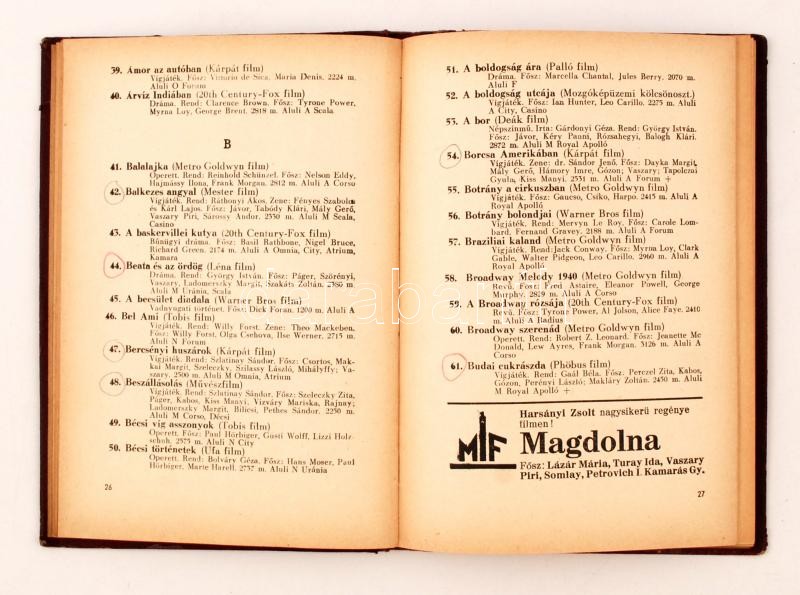 1941 Filmcompass. A Magyar Mozisok Zsebkönyvének évkönyve, benne az adott év moziműsoraival, megjelent filmjeivel. 80 p. Kiadói félvászonkötésben, egy-két ceruzás bejegyzéssel.