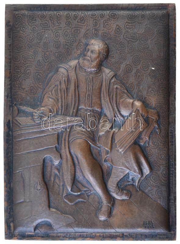 Leírás: 1935. "Elmélkedő tudós" bronzírozott Cu lemezplakett. Szign.: Heks (104,48g/144x104mm) T:2 / 1935. "Contemplative Scholar" bronzed Cu plate plaque. Sign.: Heks (104,48g/144x104mm) C:XF