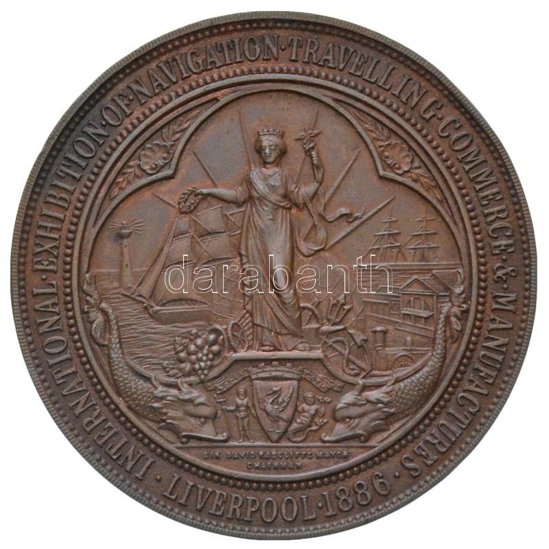 Nagy-Britannia / Liverpool 1886. "Nemzetközi Hajózási, Utazási és Kereskedelmi Kiállítás" Cu emlékérem "ELKINGTON & CO." gyártói jelzéssel, kissé sérült tokban (58,29g/51mm) T:1-,2 kis ph. /