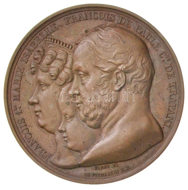 Nápoly-SzicÃliai KettÅ‘s Királyság 1830. "I. Ferenc nápoly-szicÃliai király - Mária Izabella - Ferenc herceg / Párizsi pénzverde látogatása alkalmából 1830. Május 31." Br emlékérem. Szign.: Barre - Puymaurin (52,82g/50mm) T:2 /