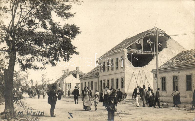 Leírás: 1916 Wiener Neustadt, nach Tornado, schwer beschädigte Gebäude / damaged buildings, M. Weitzl photo
