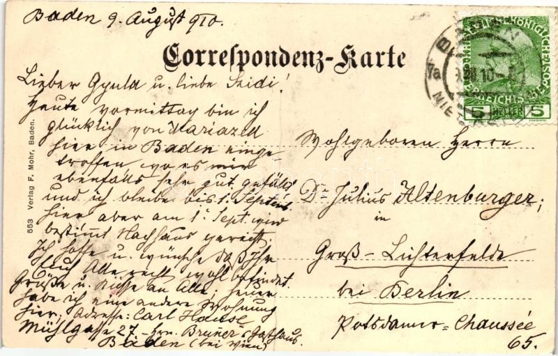 Leírás: Baden bei Wien, Schloss Wellburg, Ruine Rauhenegg, clover Art Nouveau litho (EK)