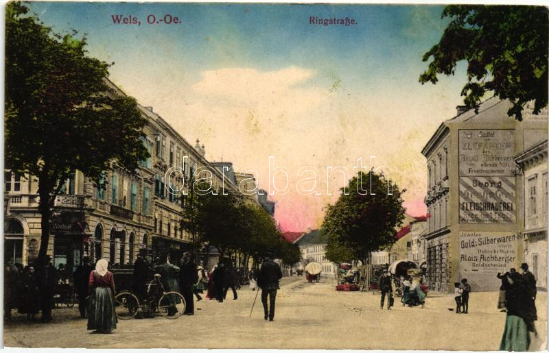 Wels, Ringstrasse / main street, shops https://www.darabanth.com/hu/25-Nagyaukcio/25.1/Varoskepes-lapok/Ausztria~9821/Wels-Ringstrasse-main-street-shops~II1380232