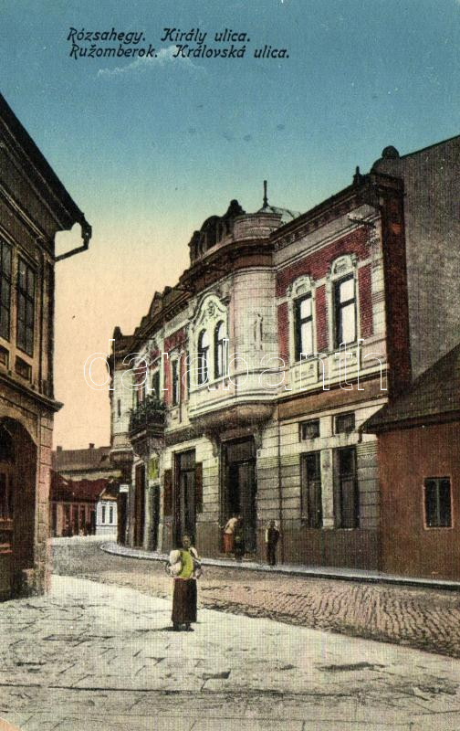 Rózsahegy, Ruzomberok; Király utca, Královská ulica / Street https://www.darabanth.com/hu/25-Nagyaukcio/25.1/Varoskepes-lapok/Felvidek~9812/Rozsahegy-Ruzomberok-Kiraly-utca-Kralovska-ulica-Street~II1369400