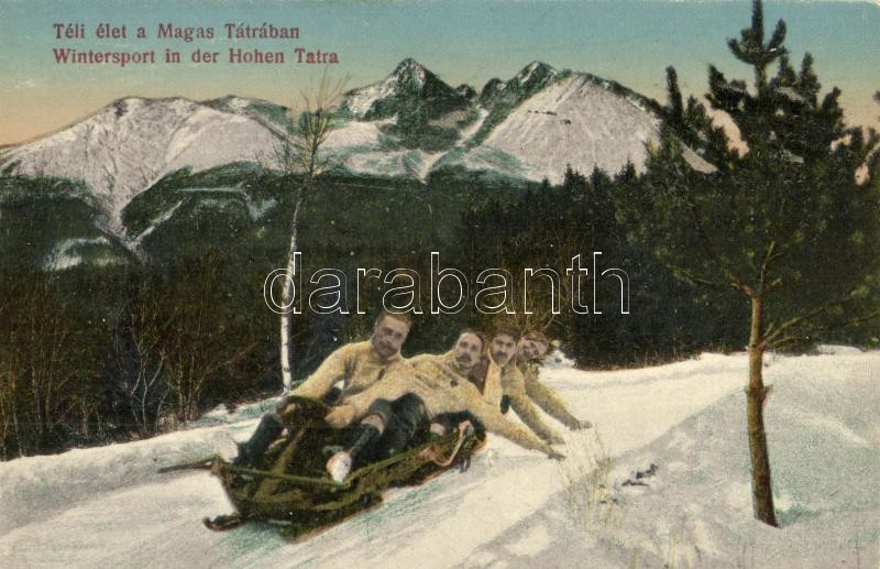 Leírás: Tátra, Téli élet, szánkózók / winter sport, sledding people