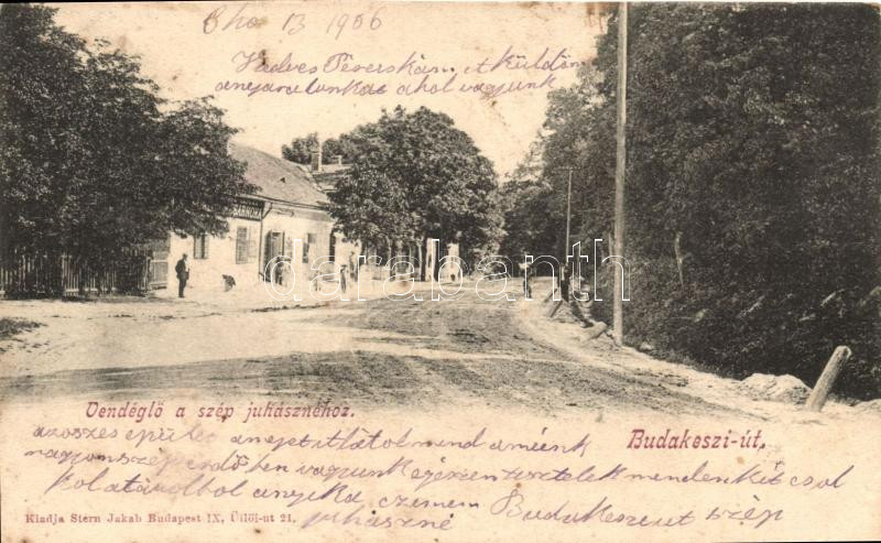 Leírás: Budapest II. Budakeszi út, vendéglő a szép juhásznéhoz; kiadja Stern Jakab (EB)