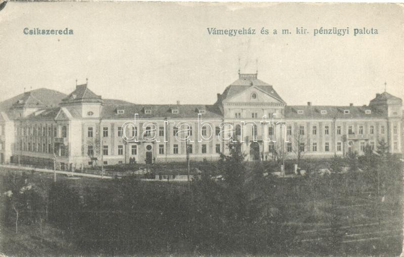 Leírás: Csíkszereda Vármegyeháza, Pénzügyi palota, Szabó Lajosné kiadása / county hall, Financial palace (vágott / cut)