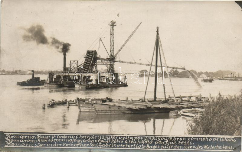 Komárom, Kotróhajó a téli kikötő partját tölti / Suction dredge, photo... https://www.darabanth.com/hu/250-Gyorsarveres/250.0/Kepeslapok/Felvidek~200008/Komarom-Kotrohajo-a-teli-kikoto-partjat-tolti-Suction-dredge-photo-EK~II1200137