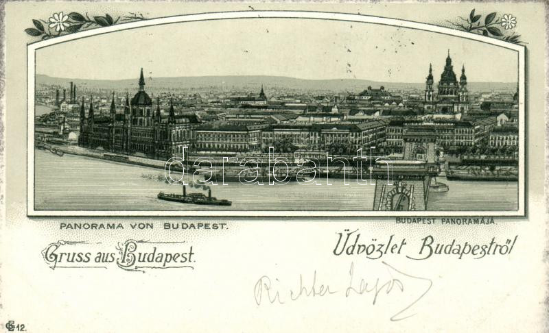 Budapest panorámája, floral litho https://www.darabanth.com/hu/250-Gyorsarveres/250.0/Kepeslapok/Magyarorszag~200006/Budapest-panoramaja-floral-litho~II1207416