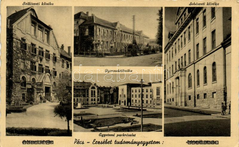 Pécs, Erzsébet tudományegyetem, Szülészeti klinika, Gyermekklinika, Se... https://www.darabanth.com/hu/250-Gyorsarveres/250.0/Kepeslapok/Magyarorszag~200006/Pecs-Erzsebet-tudomanyegyetem-Szuleszeti-klinika-Gyermekklinika-Sebeszeti-klinika-Egyetem~II1201356
