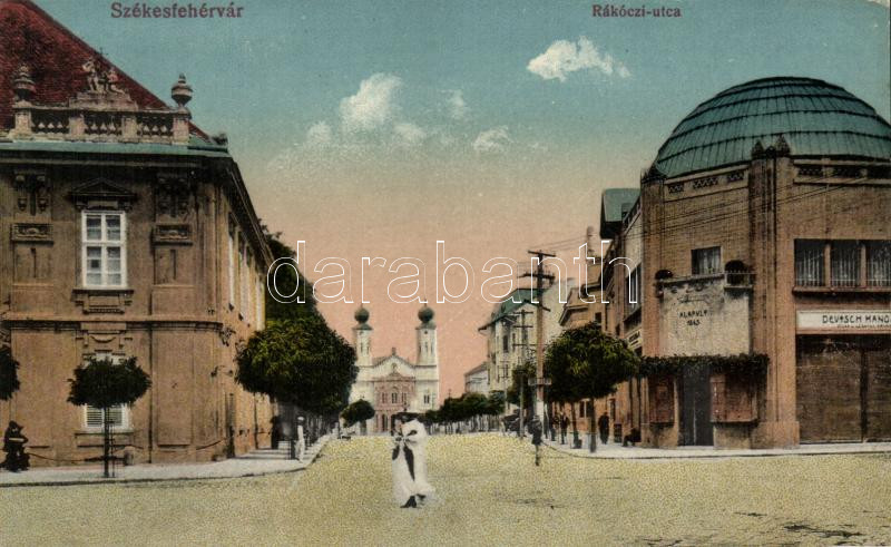Székesfehérvár, Rákóczi utca, zsinagóga, Deutsch Manó üzlete https://www.darabanth.com/hu/250-Gyorsarveres/250.0/Kepeslapok/Magyarorszag~200006/Szekesfehervar-Rakoczi-utca-zsinagoga-Deutsch-Mano-uzlete~II1201446