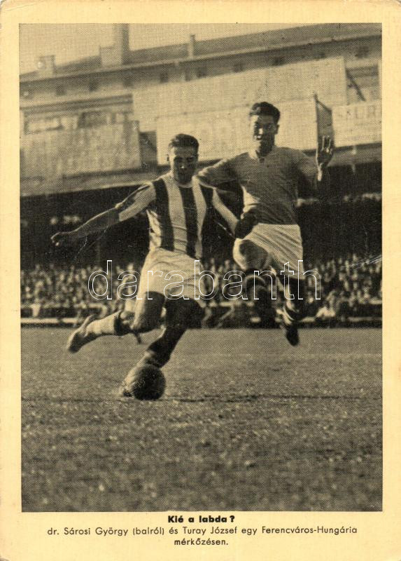 'Kié a labda?', dr. Sárosi György és Turay József egy Ferencváros-Hung... https://www.darabanth.com/hu/250-Gyorsarveres/250.0/Kepeslapok/Sport~200112/Kie-a-labda-dr-Sarosi-Gyorgy-es-Turay-Jozsef-egy-Ferencvaros-Hungaria-merkozesen-fa~II1204126
