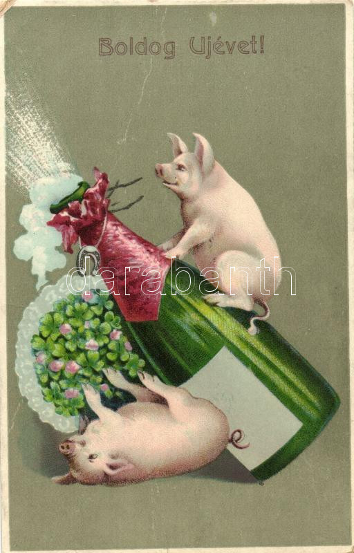 Boldog Újévet! / New Year, pigs, champagne, litho (EK) https://www.darabanth.com/hu/250-Gyorsarveres/250.0/Kepeslapok/Udvozlolap~200092/Boldog-Ujevet-New-Year-pigs-champagne-litho-EK~II1205561