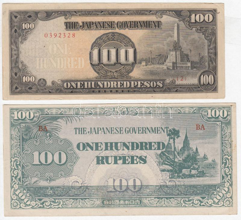 Burma / Japán megszállás 1944. 100R + Fülöp-szigetek / Japán megszállás 1944. 100P T:I-,III