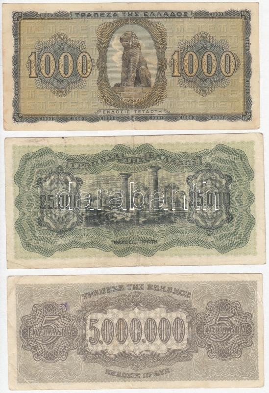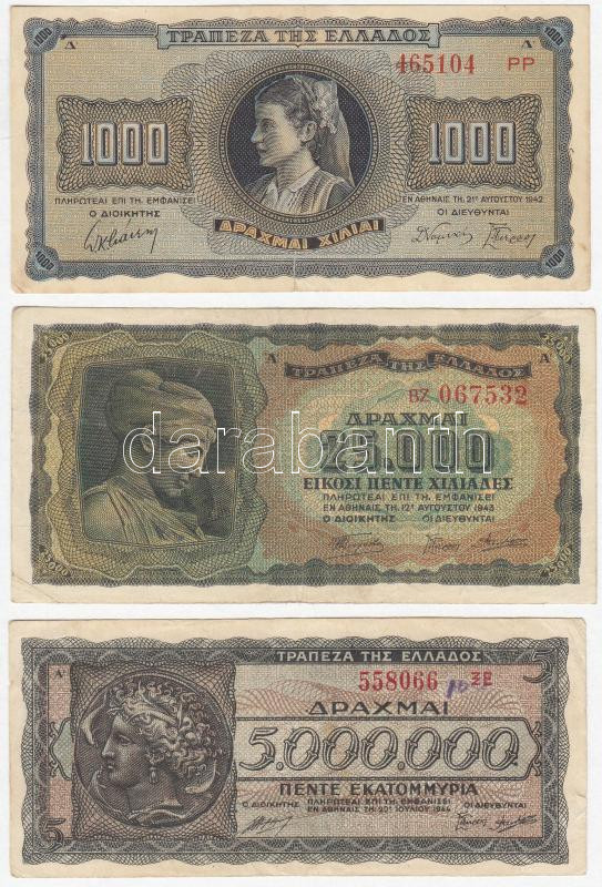 Leírás: Görögország / Német megszállás 1942. 1000D + 1943. 25.000D + 1944. 5.000.000D T:III