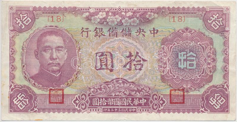 China / Japanese occupation 1... https://www.darabanth.com/hu/250-Gyorsarveres/250.0/Numizmatika/Kulfoldi-bankjegyek~14/Kina-Japan-megszallas-1943-10Y-TIII--China-Japanese-occupation-1943-10-Yuan-CF~II1200909