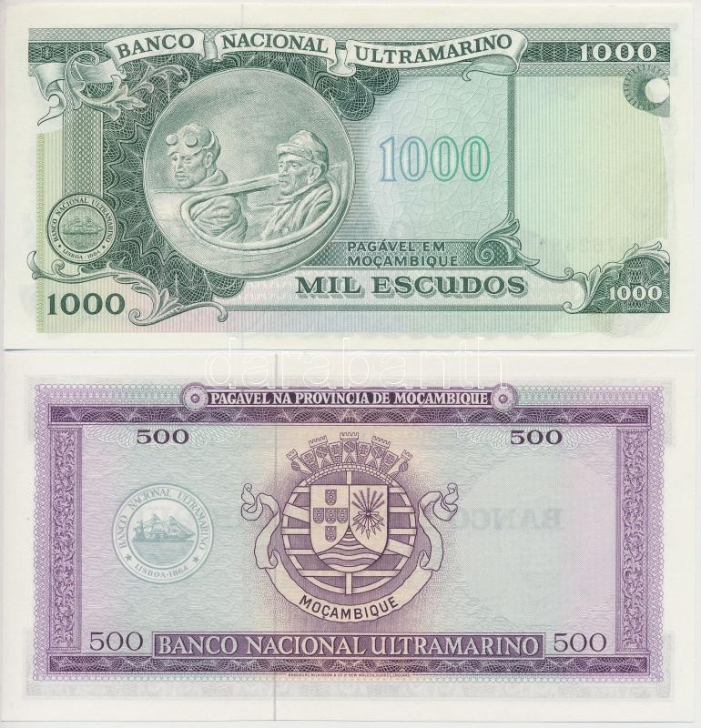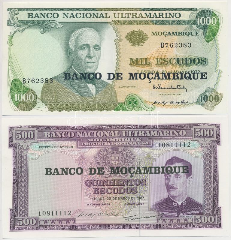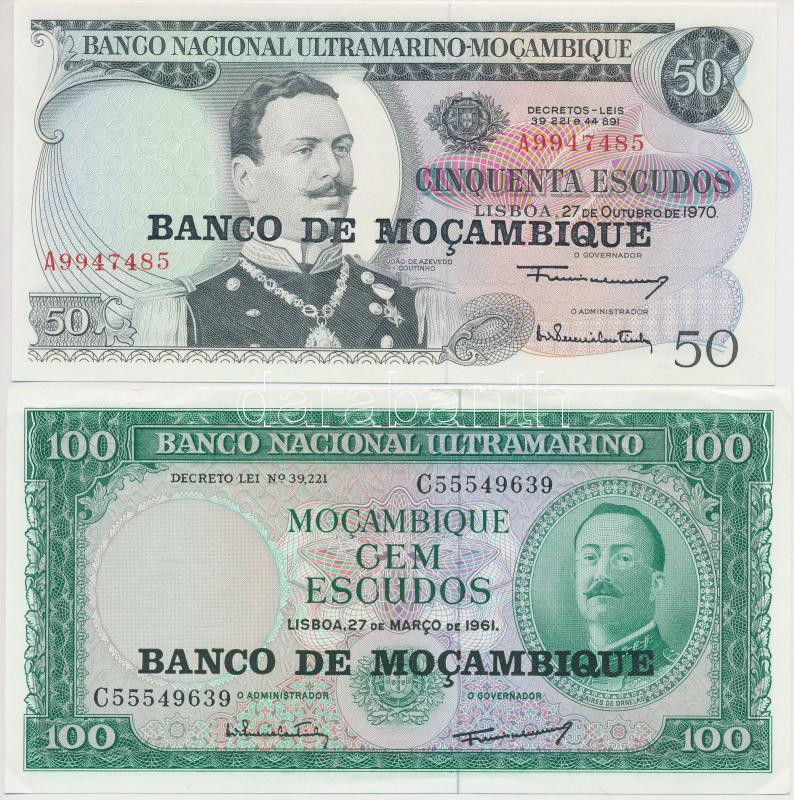 Leírás: Mozambik 1961. 100Esc + 1967. 500Esc + 1970. 50Esc + 1972. 1000Esc T:I-