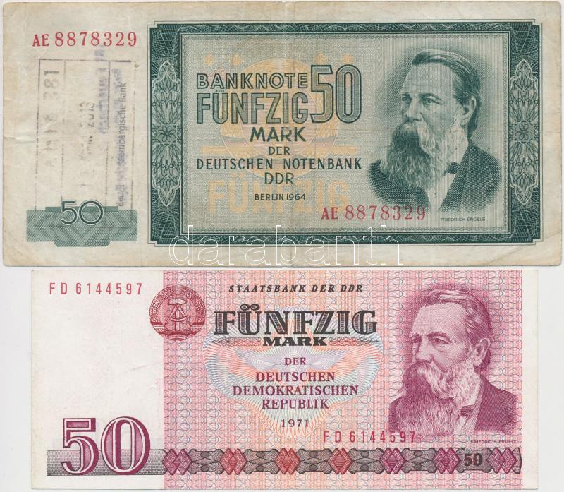 Leírás: NDK 1964. 50M "381 Feuerbach Baden-Württembergische Bank" felülbélyegzéssel + 1971. 50M T:III