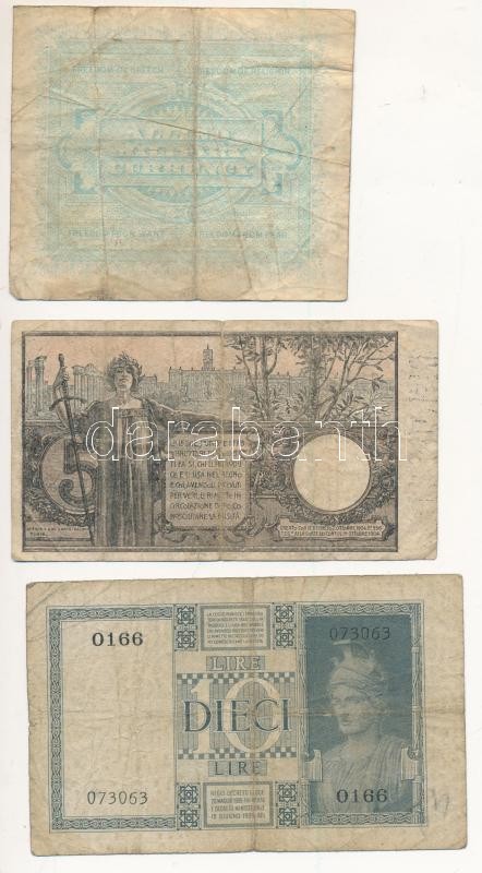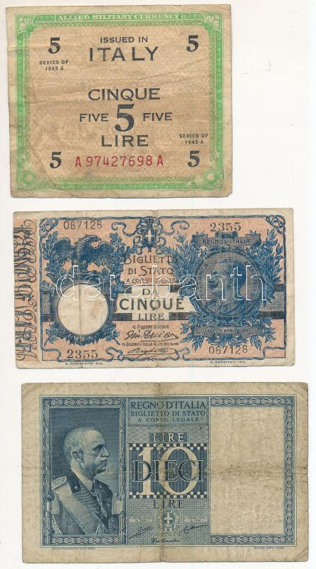 Leírás: Olaszország 1915. 5L + 1935. 10L + Szövetséges megszállás 1943A 5L T:III,III-