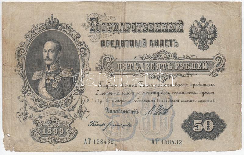 Russian E... https://www.darabanth.com/hu/250-Gyorsarveres/250.0/Numizmatika/Kulfoldi-bankjegyek~14/Orosz-Birodalom-1912-1917-1899-50R-Szign-Shipov-TIII---Russian-Empire-1912-1917-1899-50-Rub~II1200489