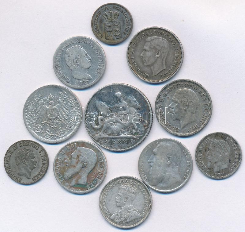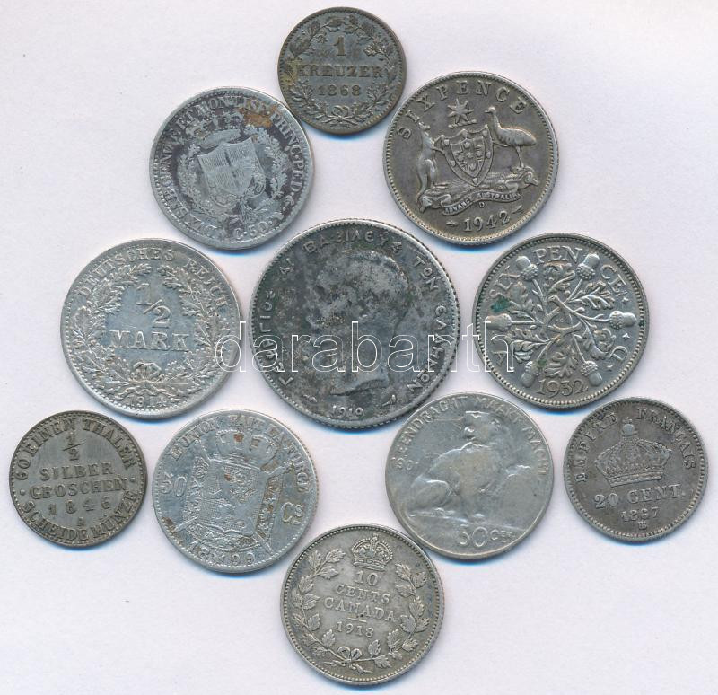 11db-os vegyes külföldi ezüstpénz tétel, közte Franciaország / Második Császárság 1867BB 20c Ag "III. Napóleon", Német Birodalom 1914A 1/2M Ag, Kanada 1918. 10c Ag "V. György" T:vegyes
