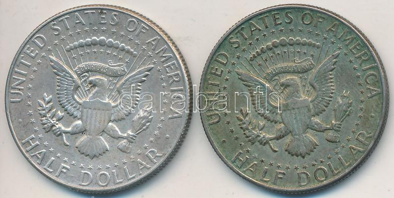 Amerikai Egyesült Államok 1967. 1/2$ Ag "Kennedy" + 1968D 1/2$ Ag "Kennedy" T:2,2- patina