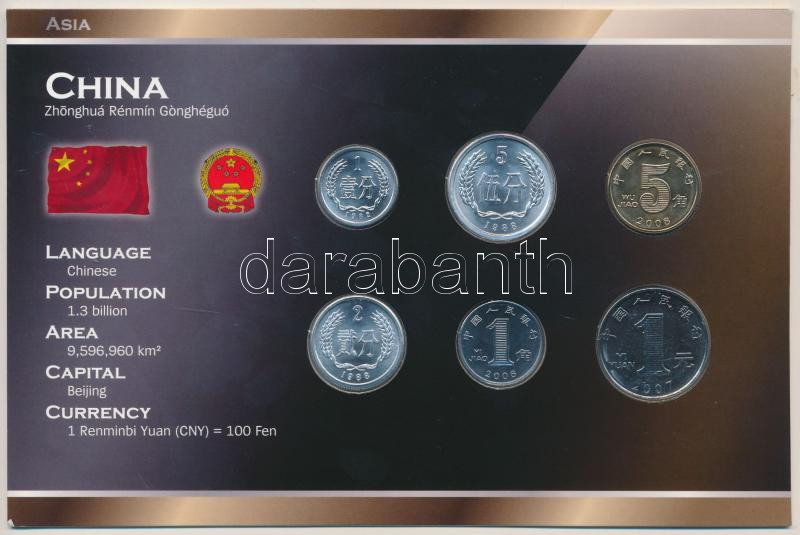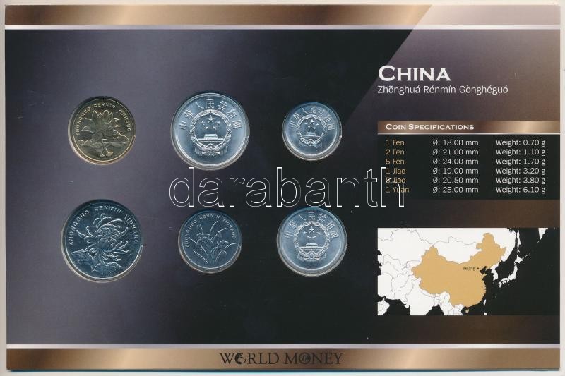 China 1... https://www.darabanth.com/hu/250-Gyorsarveres/250.0/Numizmatika/Kulfoldi-fem-es-ezustpenzek~15/Kina-1982-2008-1f-1Y-6xklf-fempenz-szett-World-Money-T1--China-1982-2008-1-Fen--1-Yuan-6~II1207629