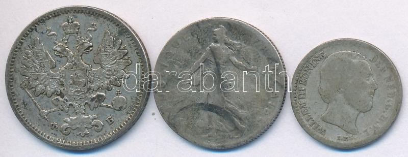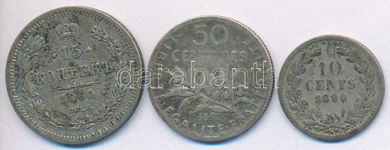 Vegyes: Orosz Birodalom 1860. 15k Ag + Hollandia 1890. 10c Ag "III Vilmos" + Franciaország 1898. 50c Ag T:2-,3