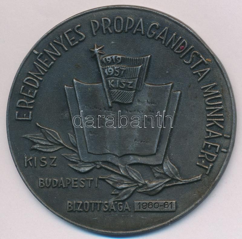 1961. "Eredményes propagandista munkáért - KISZ Budapesti Bizottsága" ... https://www.darabanth.com/hu/250-Gyorsarveres/250.0/Numizmatika/Magyar-emlekveretek~11/1961-Eredmenyes-propagandista-munkaert--KISZ-Budapesti-Bizottsaga-fem-emlekerem-60mm-T~II1203695