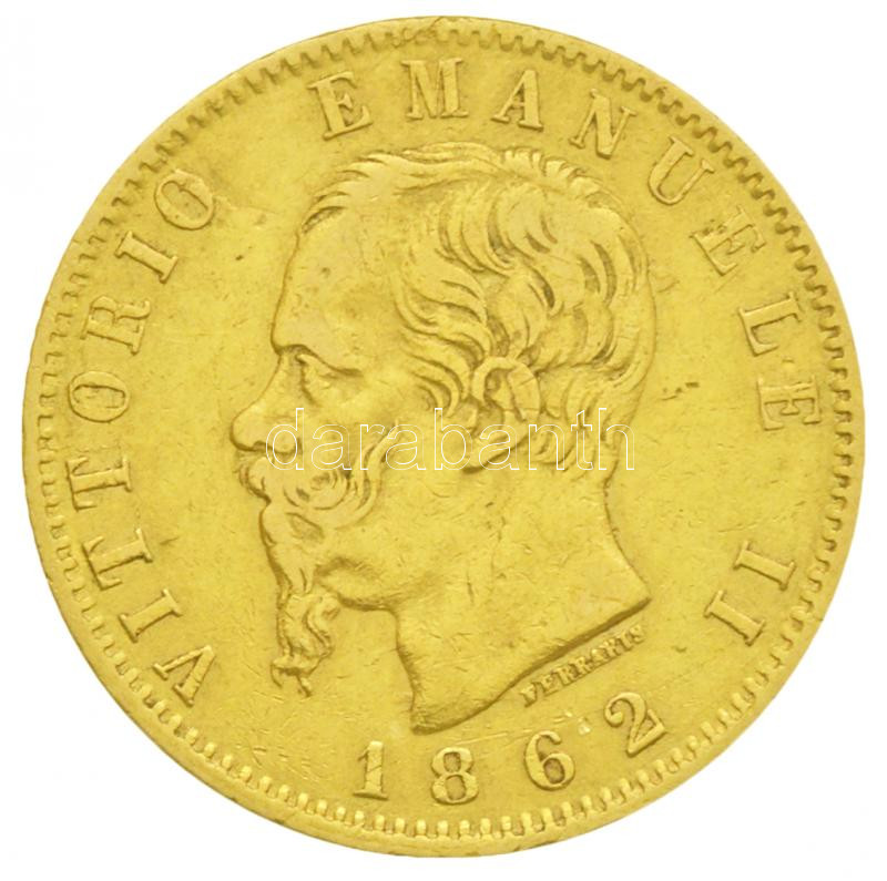 Ital... https://www.darabanth.com/hu/250-Gyorsarveres/250.0/Numizmatika/Magyar-es-kulfoldi-arany-penzek~13/Olaszorszag-1862-20L-Au-II-Viktor-Emanuel-6-43g0900-T2---Italy-1862-20-Lire-Au-Vittorio~II1205019