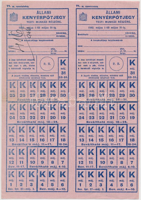 1946. "Állami kenyérpótjegy testi munkás részére" hátoldalán hirdetmén... https://www.darabanth.com/hu/250-Gyorsarveres/250.0/Numizmatika/Magyar-es-kulfoldi-papir-es-fem-szuksegpenzek~6/1946-Allami-kenyerpotjegy-testi-munkas-reszere-hatoldalan-hirdetmeny-palinkafozesrol~II1206154