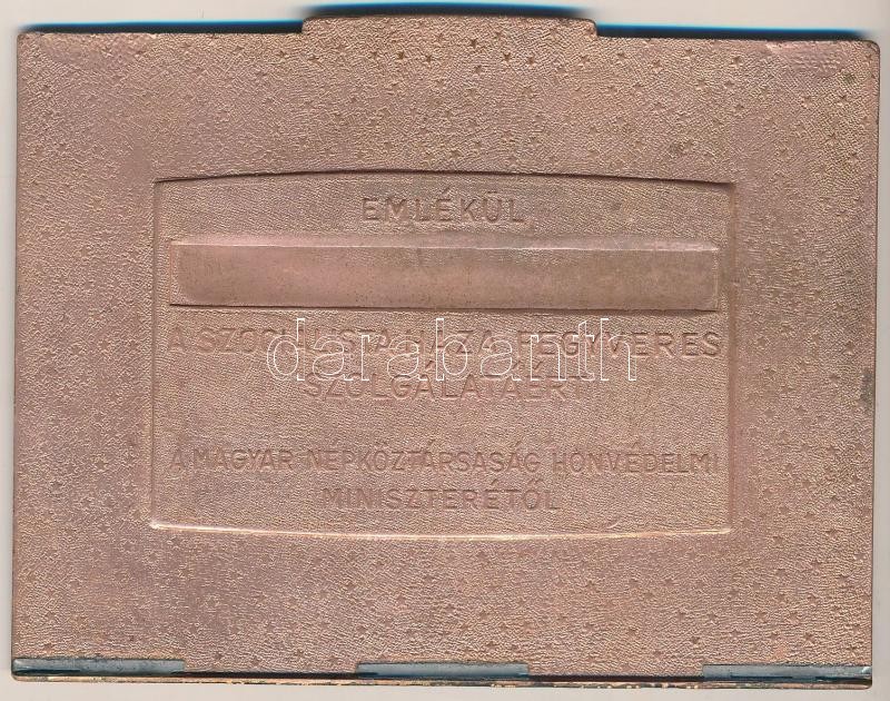 DN "Emlékül a szocialista haza fegyveres szolgálatáért a Magyar Népköztársaság honvédelmi miniszterétől" fém doboznak a fedele domborművel (125x93mm) T:2-