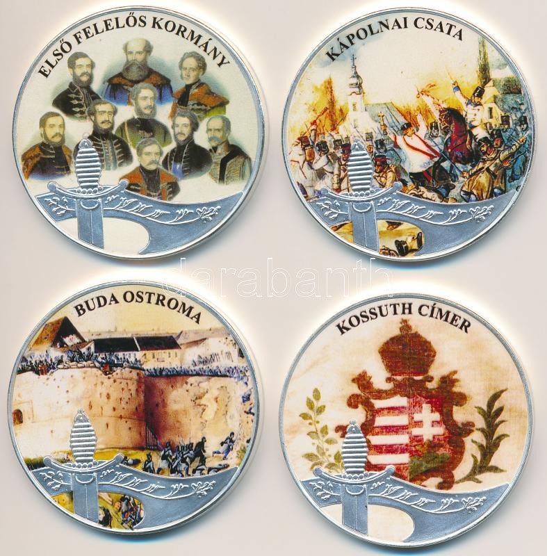 Leírás: DN "A szabadságharc képes krónikája" (4xklf) festett, ezüstözött Cu-Ni emlékérmék tanúsítvánnyal T:PP felületi karc