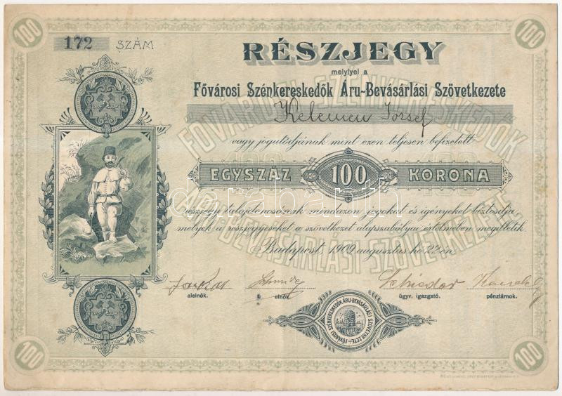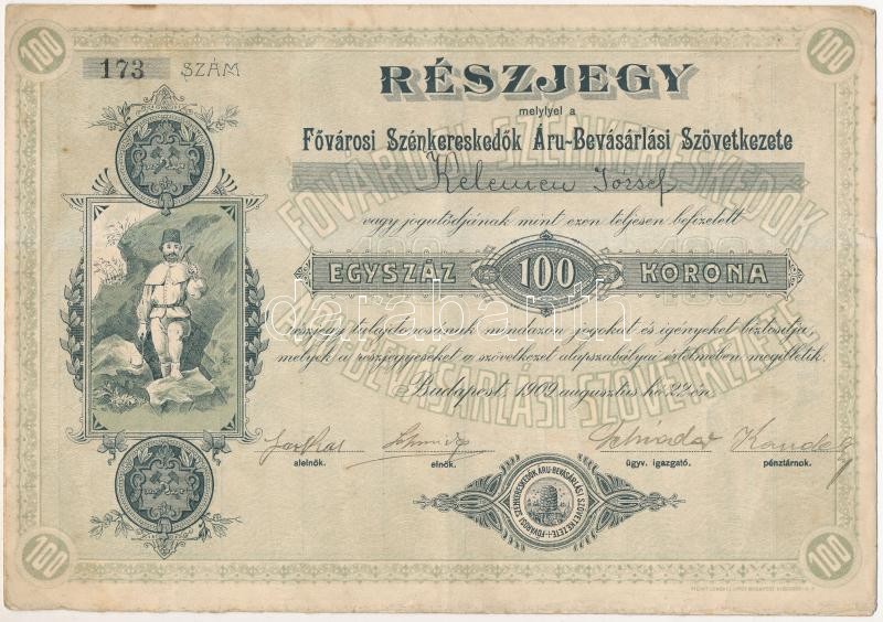 Budapest 1909. "Fővárosi Szénkereskedők Áru-Bevásárlási Szövetkezete" ... https://www.darabanth.com/hu/250-Gyorsarveres/250.0/Numizmatika/Reszvenyek-es-sorsjegyek~5/Budapest-1909-Fovarosi-Szenkereskedok-Aru-Bevasarlasi-Szovetkezete-reszjegye-100K-rol-~II1200622